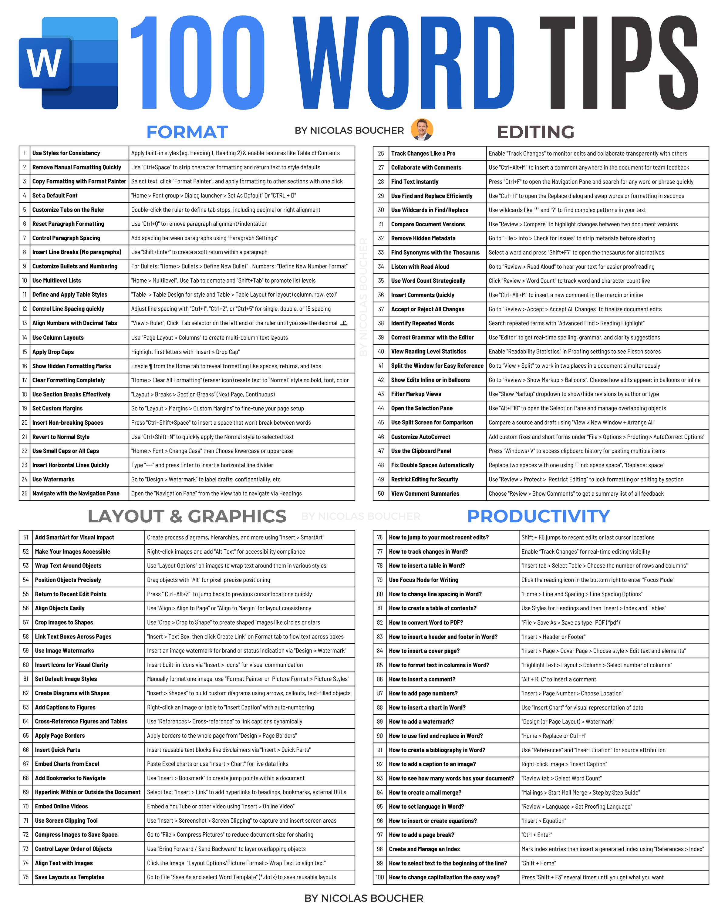 High-quality PDF collection of the top 100 Word tips that will increase your speed and productivity by 10x in WordYou will also receive 5 goodies as a welcome gift for joining my free newsletter