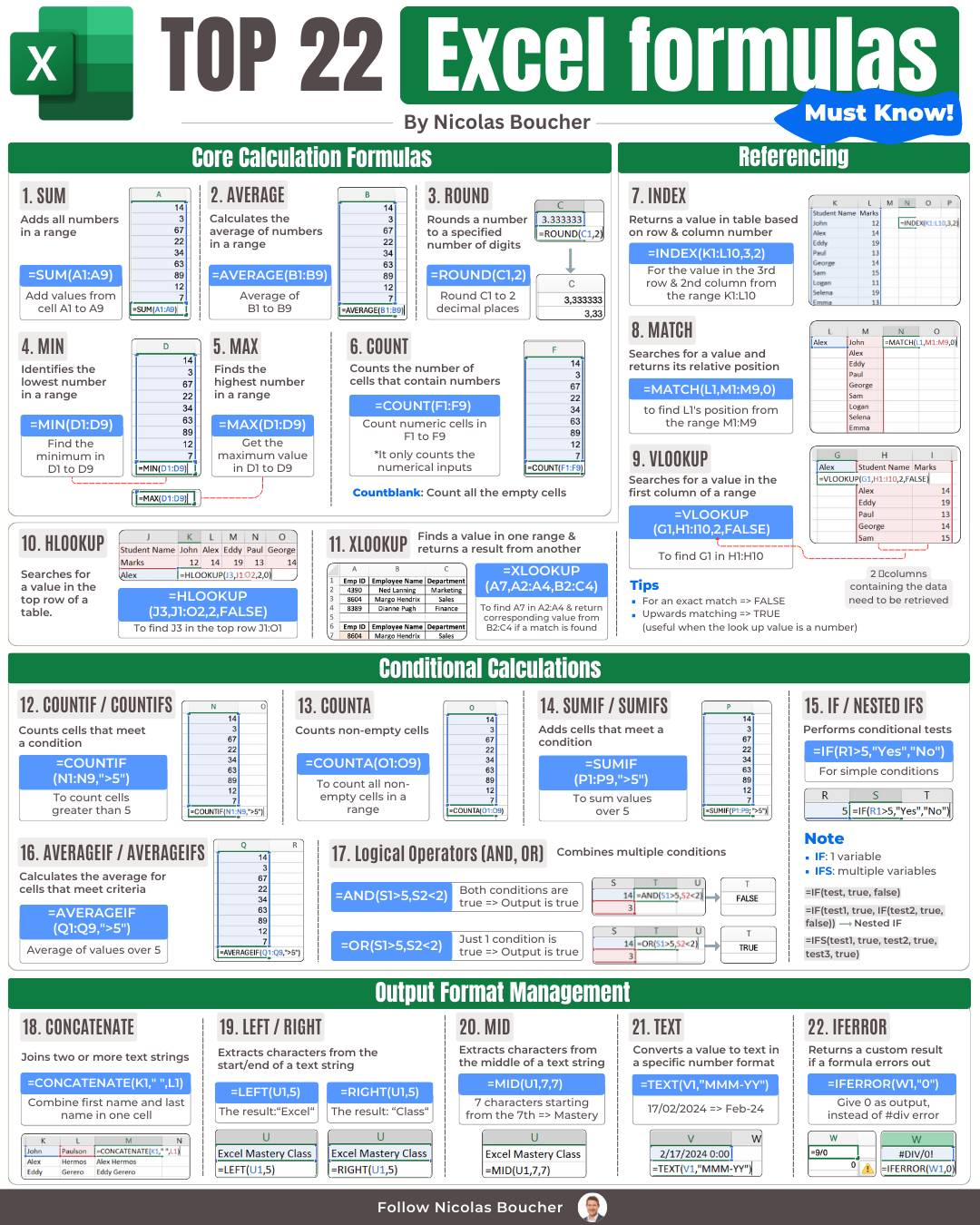 High-quality PDF collection of the top 22 must need Excel formulas and that will make your work more efficient while working in Excel.